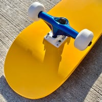 Yellow Complete Skateboard w/ Metallic Blue Trucks